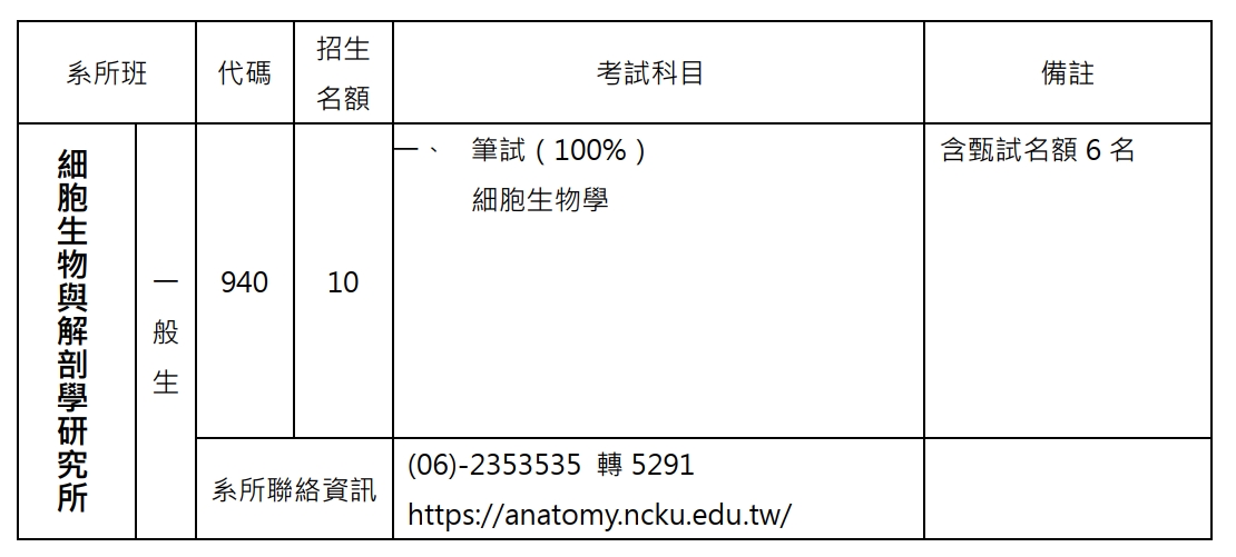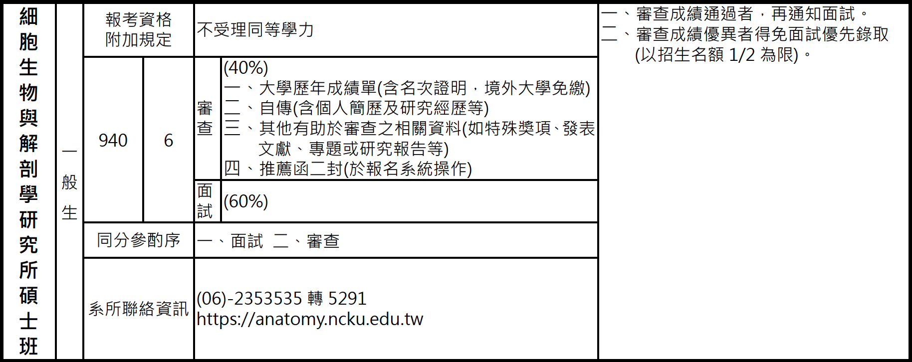 (招生相關資訊與報考流程請參閱 國立成功大學網路招生系統)